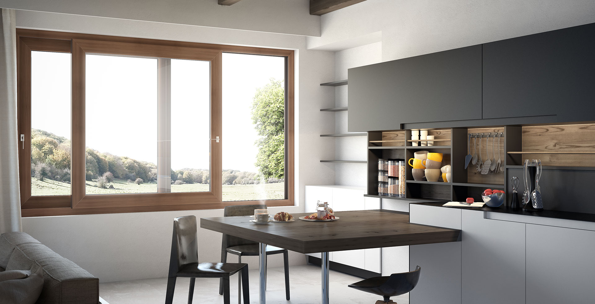 Bilico: il sistema permette di avere finestre di grandi dimensioni che consentono una visuale molto ampia, ottenendo una ventilazione ottimale.