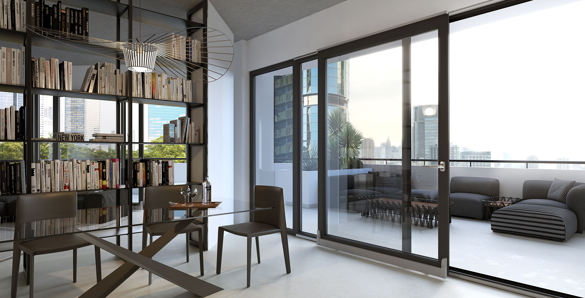 Scorrevole parallelo: consente di avere tutti i benefit delle aperture scorrevoli, ma con la possibilità di aprire entrame le ante.