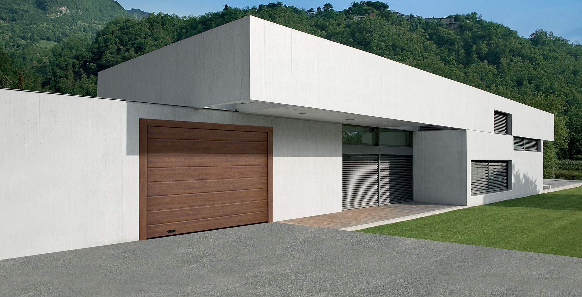 I portoni sezionali si aprono verticalmente verso l’alto, guadagnando così spazio sia dentro che davanti al garage e lasciando libero il passaggio.